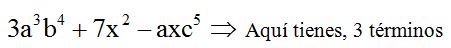 Término: Cada grupo de letras o números. Los términos están separados unos de otros por signos más o menos: